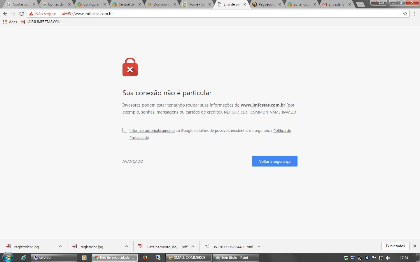Luiz, apontei as entradas para o Registro.br, agora aparece a mensagem de “erro de privacidade”: