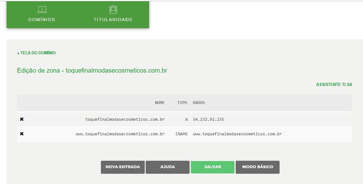 a configuração nao está correta, se o domínio for: www.toquefinalmodasecosmeticos.com.br