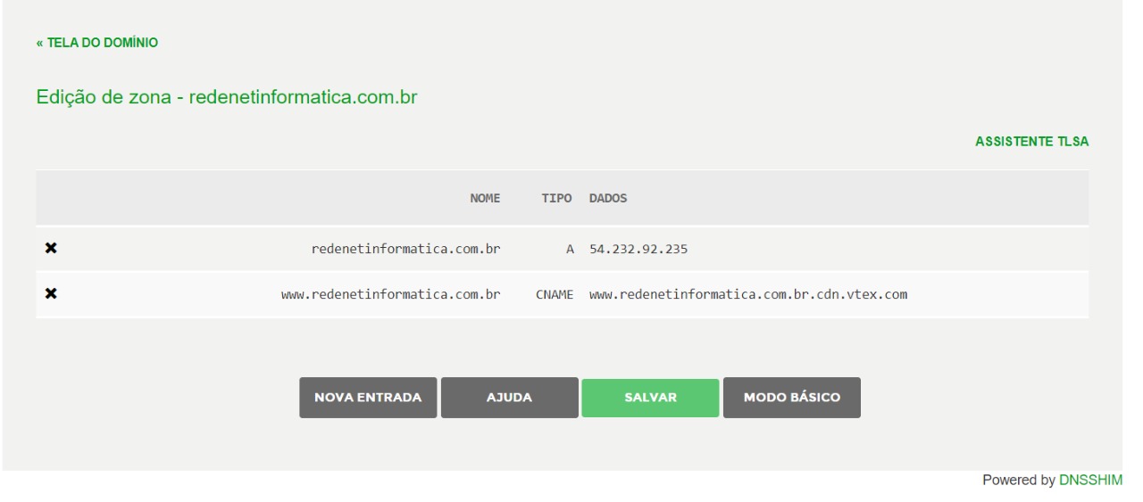 Meu domínio está configurado no Registro.br e na plataforma Loja integrada, mas não consigo fazer funcionar. Estou fazendo algo de errado? Segue print.