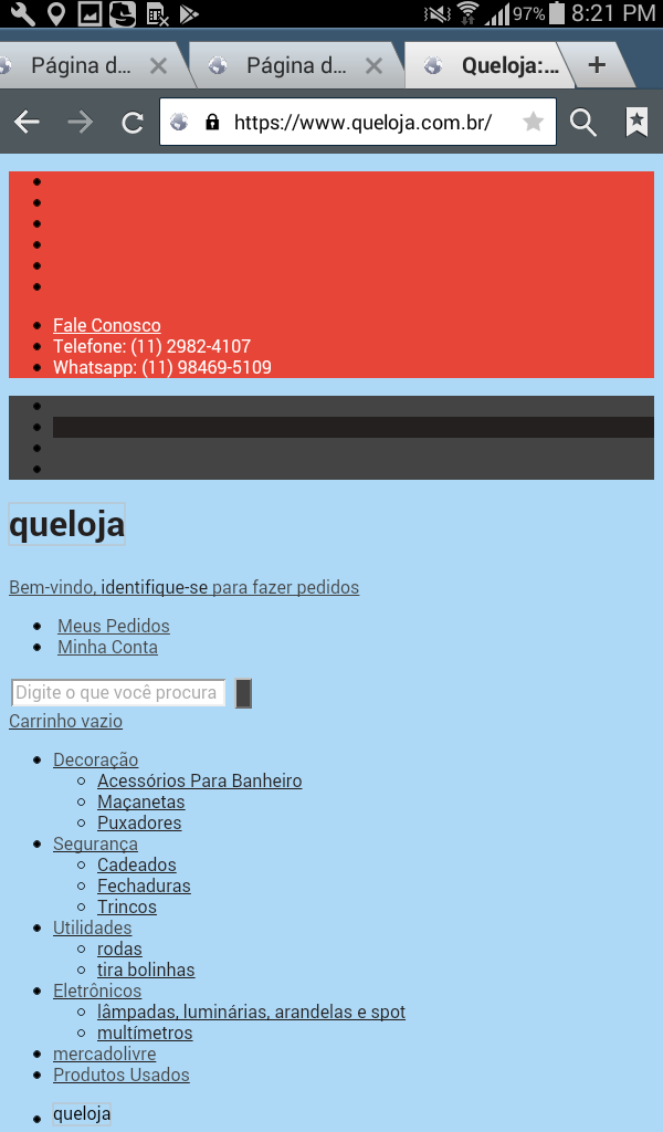 Nos testes que fiz o site fica desconfigurado quando se busca na internet tanto no tablet quanto no celular. Os demais sites que tenho pelo wordpress e blogger abrem normal em todos os meios google, internet pc, celular e tablet e o problema é só com o queloja.